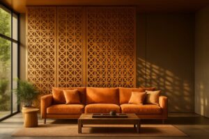 Na decoração, o muxarabi pode ser usado de várias formas. Em salas de estar e áreas gourmet, por exemplo, ele funciona muito bem como painel de destaque ou divisória entre ambientes integrados. Já em cozinhas e quartos, pode aparecer em portas de armários, frentes de móveis ou cabeceiras, agregando um toque artesanal e contemporâneo.